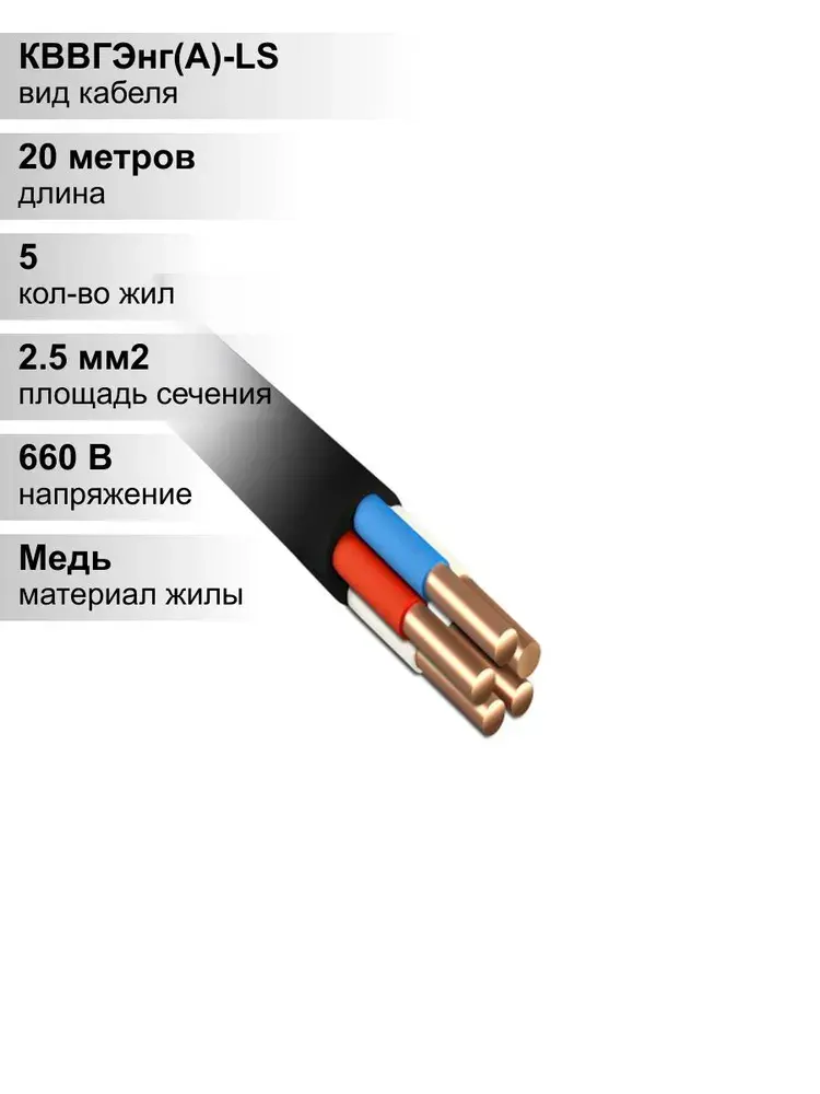 (20 м.) Кабель контрольный КВВГЭ нг(А)-LS 5*2.5 ТРТС Кабель контрольный, не распротраняющий горение при прокладке в пучке, для стационарной прокладки, с нормиованным дымовыделением, экранированный
