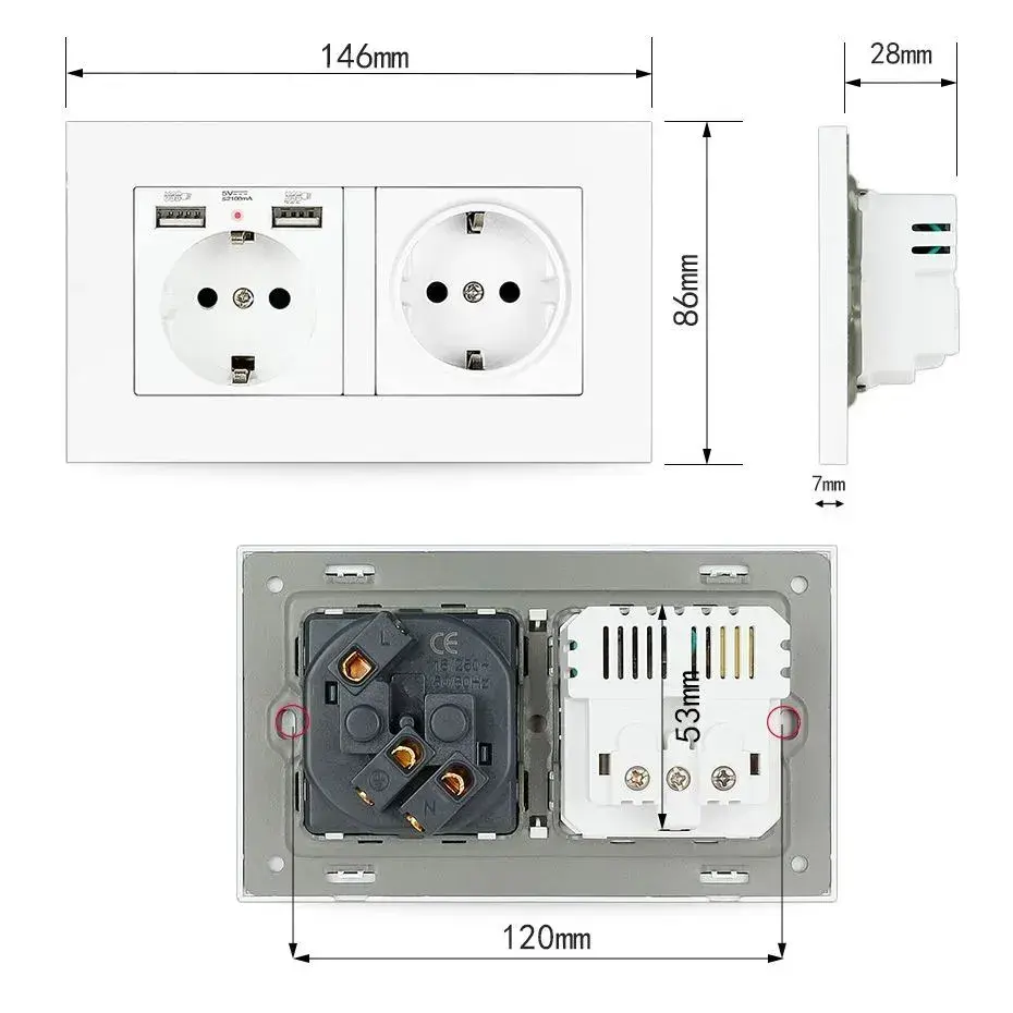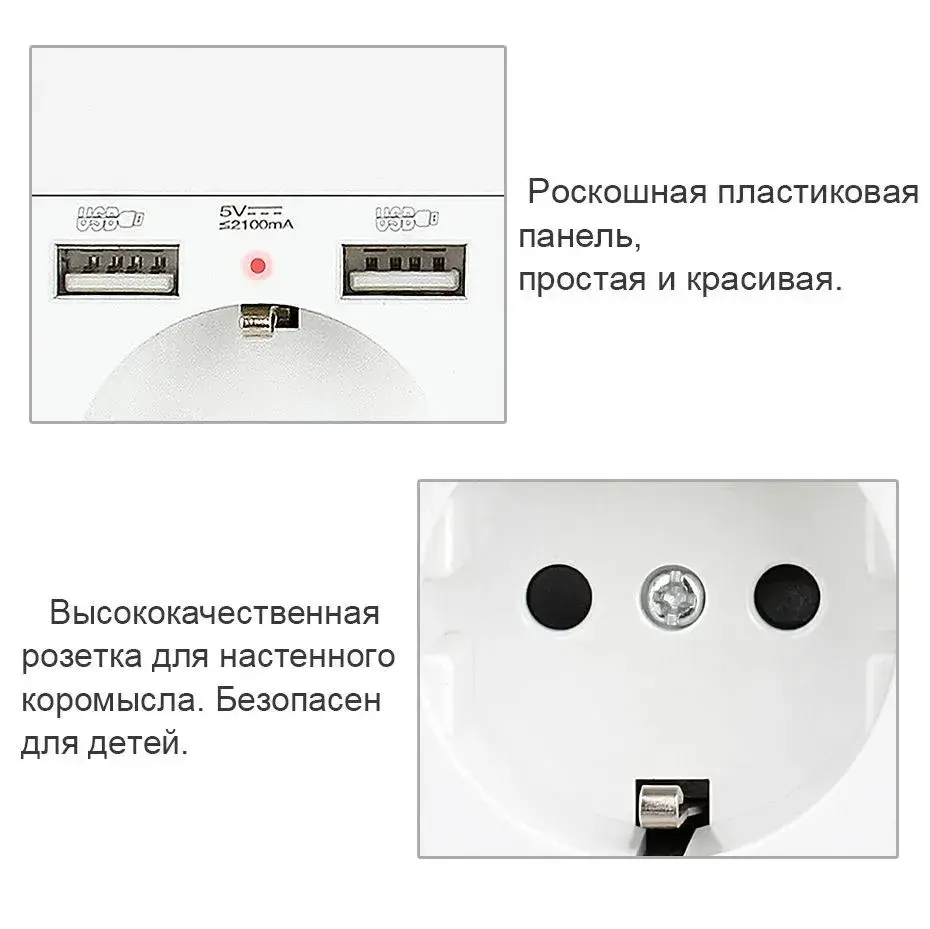 Розетка стекло белый глянец с USB Розетка имеет защитные шторки, что предотвращает проникновение посторонних предметов, работа шторок "мягкая" и незаметная, вилка вставляется без затруднений. Установка осуществляется в две стандартных круглых монтажных коробки для скрытого монтажа диаметром 65-68 мм, с межцентровым расстоянием для крепежных винтов 60 мм. В монтажные коробки диаметром 60 мм, а так же железные старого образца данная розетка не подходит, крепление осуществляется к монтажной коробке винтами из комплекта. Механизм розетки универсальный для рамок из стекла 86 типа. это новая версия электрической розетки с USB без светодиода, не шумит(не пищит),подходит в стандартный круглый подрозетник размером 65-70мм, два USB 5 вольт и выходным током 2.1А, для питания и зарядки электронных устройств. Материал рамы: стекло Материалы организации: ABS пластмассы Размер: 86*86mm Рабочее напряжение (Розетка) : 250 В Ток: 16А (розетка), 2.1A (двойные usb-порты) Комплектация 1*розетка с рамкой Показать полностью -1-r/ww1200/7655988771.jpg