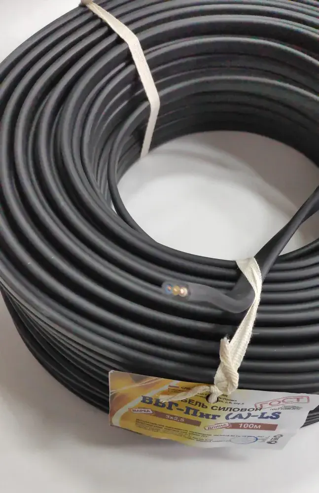 Кабель ВВГ-Пнг(А)-LS 3х1,5 мм² предназначен для передачи и распределения электроэнергии в стационарных установках на номинальное переменное напряжение 0,66 кВ номинальной частотой 50 Гц для сетей с заземленной и изолированной нейтралью. Токопроводящая жила - медная, однопроволочная, круглой формы, 1 или 2 класса по ГОСТ 22483. Число жил - 3. Номинальное сечение жилы - 1,5 мм². Изоляция выполнена из поливинилхлоридного пластиката пониженной пожарной опасности (маркировка жил цветовая). Внутренняя и наружняя оболочки - из ПВХ пластиката пониженной пожарной опасности.