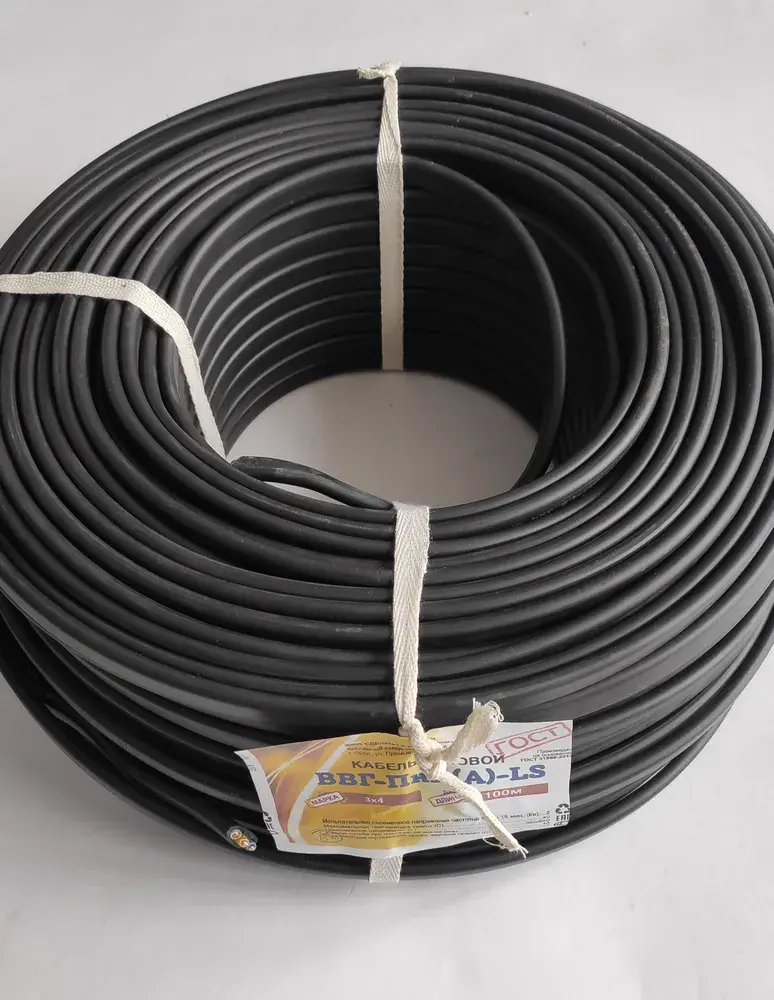 Трехжильный кабель исполнения ВВГ-Пнг(А)-LS, с медными однопроволочными жилами сечением 4 кв. мм., с изоляцией и оболочкой из ПВХ-композиции пониженной пожароопасности с низким дымо- газовыделением, не распространяющий горение при групповой прокладке. Предназначен для стационарной прокладки в жилых и нежилых помещениях. Номинальное переменное напряжение: до 660 В. При групповой прокладке таких кабелей обязательно применение средств огнезащиты. Произведен в соответствии с ГОСТ 31996-2012, ГОСТ 22483-2012, ГОСТ 31565-2012.