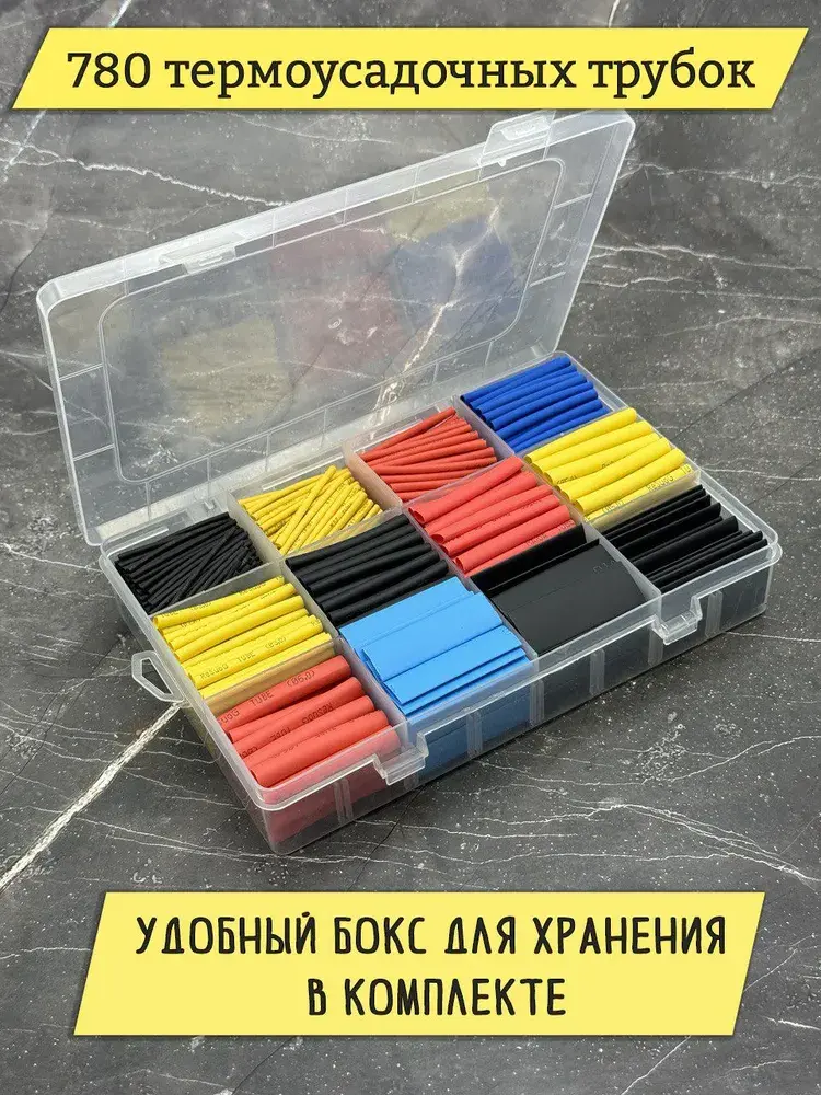 Набор термоусадочных трубок (термоусадка / кембрики рыболовные) 780 шт (1 мм-13 мм) Термоусаживаемая трубка (или Термоусадка) — термоусаживаемая пластиковая трубка, предназначенная для электрической изоляции, механической защиты соединений проводников, паек и иных соединений, Термоизоляция для проводов, Так же используется для монтажа рыбацких (рыболовных) крючков.
