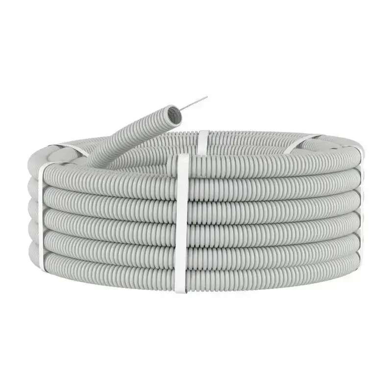 Труба гофрированная ПВХ D20 мм 50 м с протяжкой цвет светло-серый, практичный