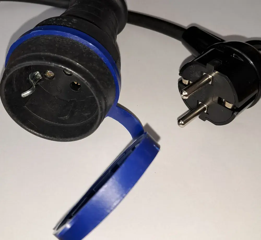 Внимание, розетка у этого удлинителя рассчитана для евровилок с диаметром штырька 5 миллиметров. Простые вилки с 4мм штырьком не будут держаться в розетке. Мощный удлинитель подойдёт для любых бытовых приборов, а также садовых и строительных инструментов, рассчитанных на стандартное напряжение 220 Вольт. Утюги, чайники, стиральные машины, обогреватели и кондиционеры. Электрические пилы, перфораторы, миксеры, мотокультиваторы. Используем настоящий медный кабель российского производства, изготовленный по ГОСТ, не усеченный, чистая медь, никакой омеднённой стали. Кабель КГтп-ХЛ 2×1.5 мм ГОСТ 24334-80, 20 медных жил диаметром 0,31 мм, сечение кабеля - честные 1,5 мм². Изоляция кабеля - резиновый, хладостойкий (не трескается и не ломается на морозе), толщина наружной изоляции 1,5 мм, резина качественная, не рвется при механических нагрузках. Контакты кабеля облужены припоем, что гарантирует надежность соединения. Вилки и розетки разборные, при необходимости можно поменять комплектующие, изменить длину и тип кабеля. Надежная розетка турецкого производства, контакты, дополнительно обжатые пружинами для защиты от ослабления контакта со временем. Каучуковая, с крышкой для защиты от попадания влаги и пыли. Вилка турецкого производства , угловая, исключает попытку вытащить вилку из розетки, потянув её за провод, при этом с кольцом, чтобы было удобно вытаскивать вилку из розетки. Для заказа доступны удлинители с 1 и 2 розетками, с длиной провода от 50 сантиметров до 10 метров.Также в наличии силовые удлинители до 70 метров длиной. Показать полностью