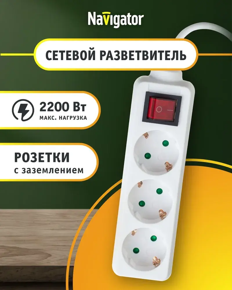 Бытовые электрические удлинители Navigator предназначены для подключения нескольких электроприборов одновременно. Идеально подходят для дома и офиса, удобны и безопасны в использовании. Сетевой удлинитель с выключателем имеет неразборный корпус, выполненный из негорючего износостойкого и ударопрочного пластика, внутренняя конструкция тройника гарантирует надежный контакт в течение всего процесса эксплуатации. Контакты из латуни не подвержены коррозии. Удлинитель с заземлением имеет эластичную муфту, которая предохраняет кабель от заломов и повреждений, а также вилку из негорючего пластика ПВХ эргономичной формы Тройники и разветвители Navigator сертифицированы, выполнены из безопасных качественных материалов и соответствуют всем нормам и требованиям безопасности. Тройник с заземлением — это незаменимый помощник в вашем доме или офисе. -1-k/ww1200/6960370988.jpg