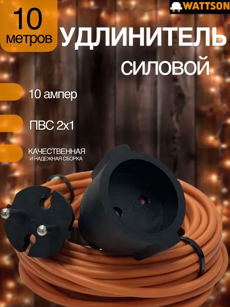 Силовой удлинитель длиной 10 метров, который станет вашим надёжным помощником в строительстве, ремонте и других задачах, требующих мобильности и доступа к электричеству.Силовой удлинитель выполнен из качественного кабеля ПВС с сечением 2х1 мм², что обеспечивает его долговечность и безопасность в эксплуатации.С таким удлинителем вы получаете полную свободу передвижения на больших площадях.Длина Силового удлинителя 10 метров позволяет подключать электроинструменты и оборудование, не ограничивая себя в перемещениях. Это особенно удобно на строительных площадках, дачах или при выполнении масштабных домашних работ.Удлинитель рассчитан на максимальную мощность 10А / 2200 Вт, что делает его универсальным для подключения различных устройств: от дрелей и лобзиков до обрезных машин и другого оборудования. Силовой удлинитель создан для активного использования в самых разных условиях. Его прочная конструкция и качественные материалы гарантируют долгий срок службы даже при интенсивной эксплуатации.Добавьте в свой арсенал этот универсальный и функциональный силовой удлинитель, который обеспечит вас непрерывным электроснабжением и поможет успешно справиться с любыми задачами. С ним вы сможете работать эффективно, безопасно и без лишних хлопот!