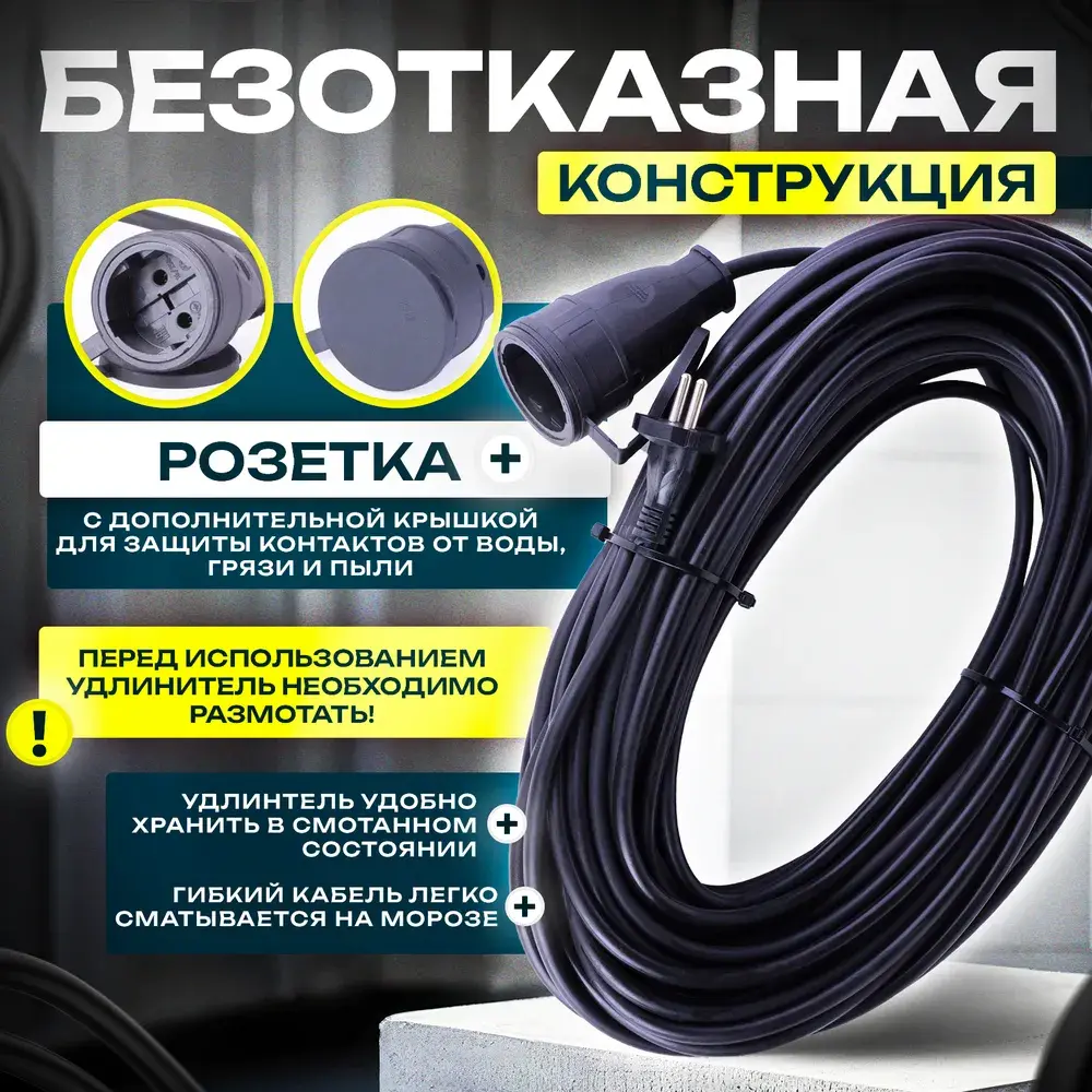 Силовой удлинитель – это переносной электроприбор с длинным, прочным и морозостойким кабелем. Усиленная оболочка кабеля исключает его заломы, а также появление трещин при эксплуатации в условиях минусовой температуры до 60 градусов. Электроудлинитель – незаменимый помощник для дачи и загородного дома. Он позволяет подключать к электричеству различные приборы. Строительный удлинитель подойдет для снегоуборщика, для газонокосилки, для сварки, для садовых электроприборов и другого оборудования, функционирующего от электрической сети. Удлинитель – незаменимый помощник в загородном доме. Усиленная обмотка защищает кабель от негативного воздействия факторов окружающей среды. А многократная размотка и смотка – не влияют на целостность провода, сохраняя его первозданные свойства на протяжении всего периода эксплуатации. Стандартных технических характеристик: сечение 2х2,5, 1 розетка и длинный провод, достаточно для использования на любых участках. Использовать удлинитель шнур, на катушке или на рамке можно для садовой техники, для инструмента и для электроприборов. Ограничения есть, но они минимальные. Это вспомогательный источник электрической энергии для стандартных приборов и устройств, используемых в саду, а так же для профессионального инструмента. Удлинитель подойдет для решения большинства задач загородного дома и строительства. Главная задача пользователя заключается в соблюдении установленных правил, без чрезмерной нагрузки на сеть. Заказать садовый удлинитель можно с доставкой по России. Гарантируем высокое качество и безопасность.